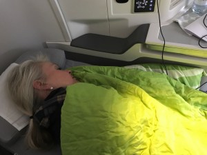 Nu är det endast fyra timmars flygresa kvar vilket betyder att vi har avverkat åtta och en halv timme här uppe i det blå… Finnairs längsta flight! Tur att Aurinkomatkat har denna relativt förmånliga möjlighet till uppgradering av reseklass. Business är verkligen guld värt då flygresan är tolv och halv timme lång.